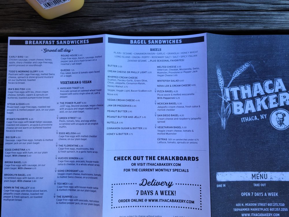 The menu is designed to cater to diverse dietary needs, offering vegan and gluten-free options alongside traditional fare. With a welcoming atmosphere, efficient service, and amenities like outdoor seating and free Wi-Fi, Ithaca Bakery ensures a fulfilling dining experience. Whether you're a local or just passing through, this charming bakery invites you to savor its delicious offerings in a casual setting.